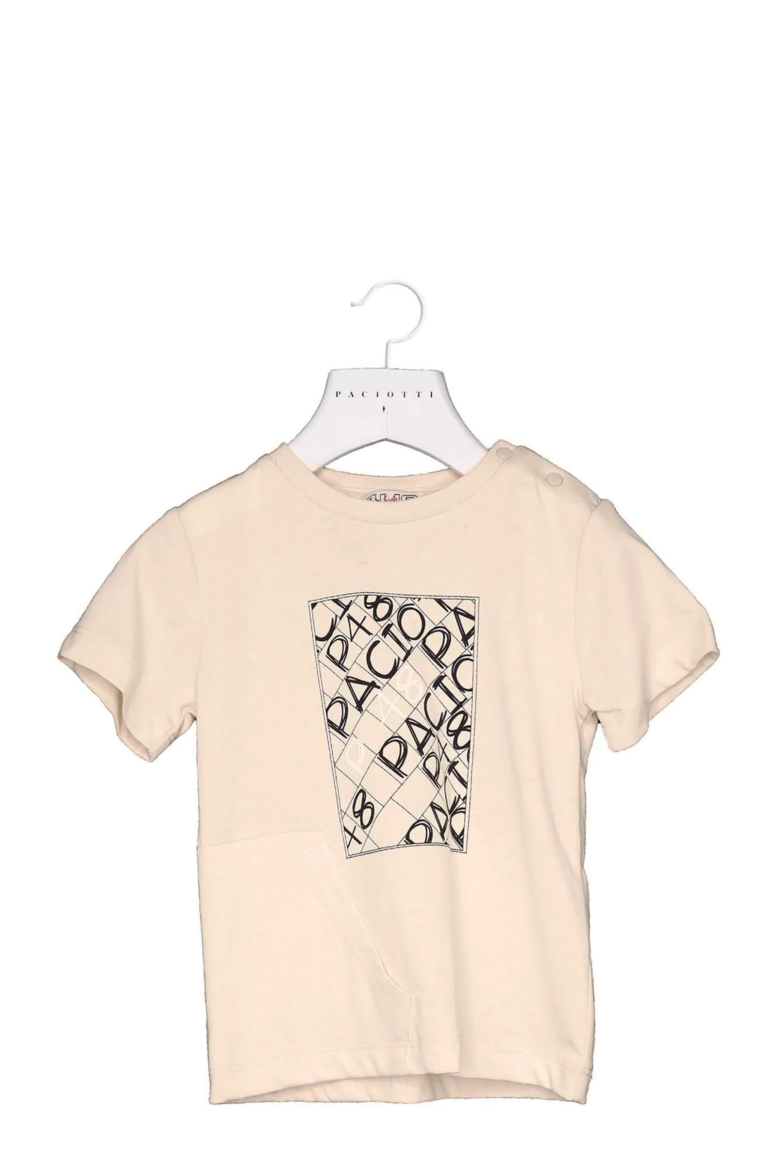 T-shirt in cotone beige con stampa a contrasto.
