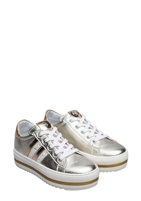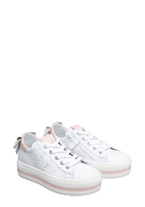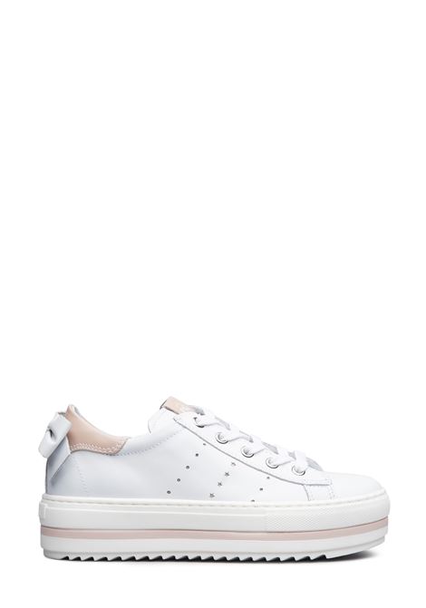 Sneakers bianche in pelle con dettagli argentati, fodera in pelle e fondo in gomma.