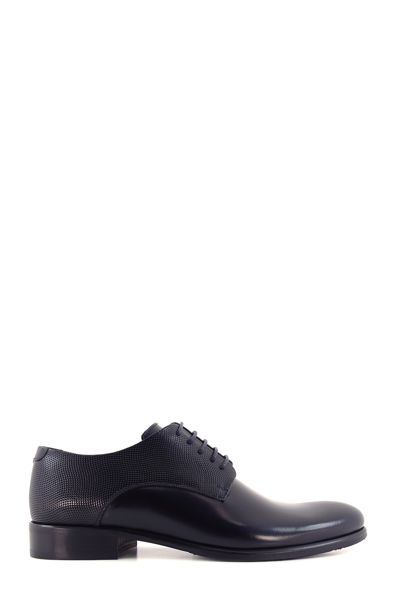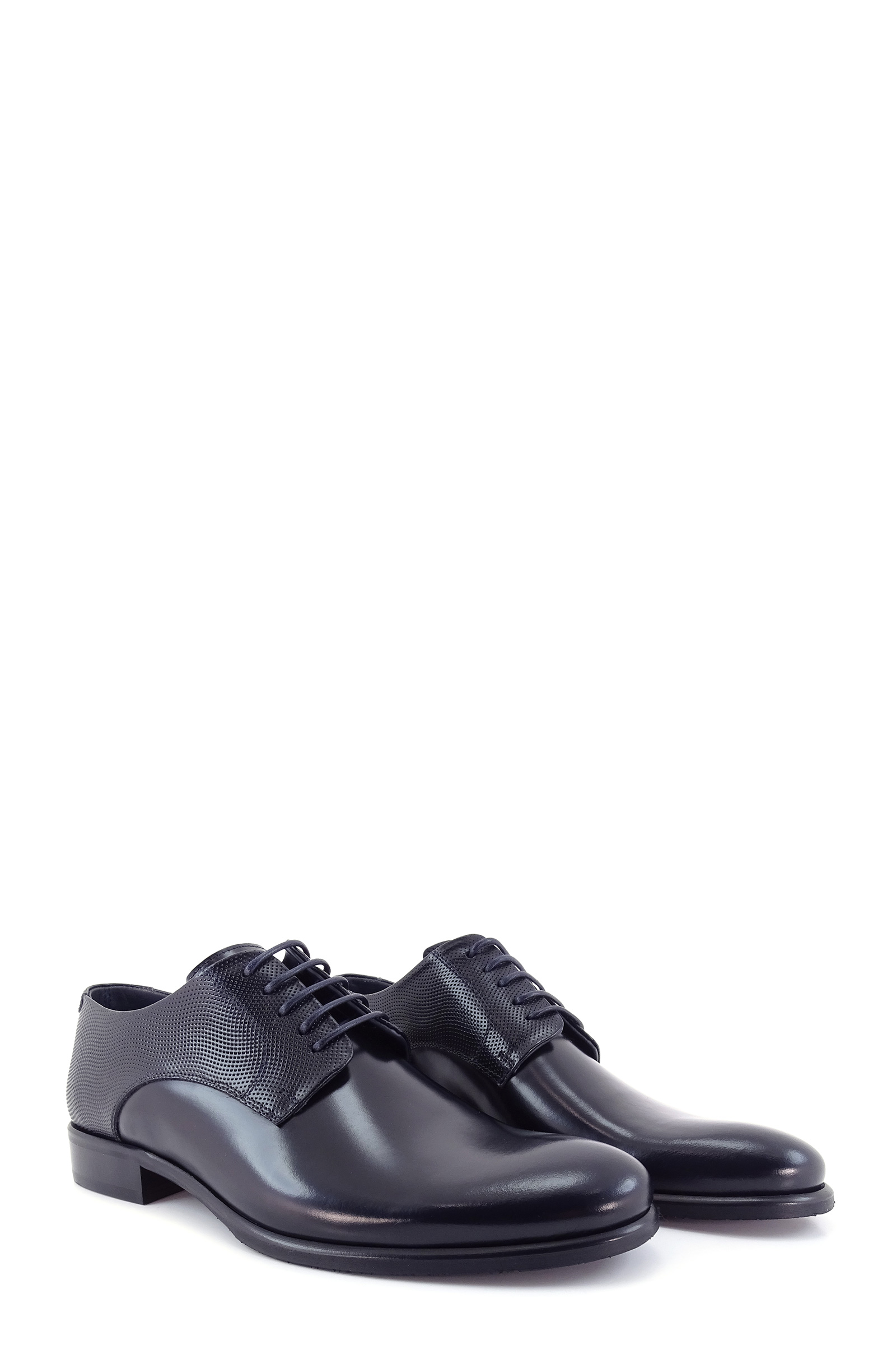 Stringate in pelle abrasivata blu, allacciatura derby, inserto in pelle effetto forato, fondo in cuoio con gomma personalizzata.