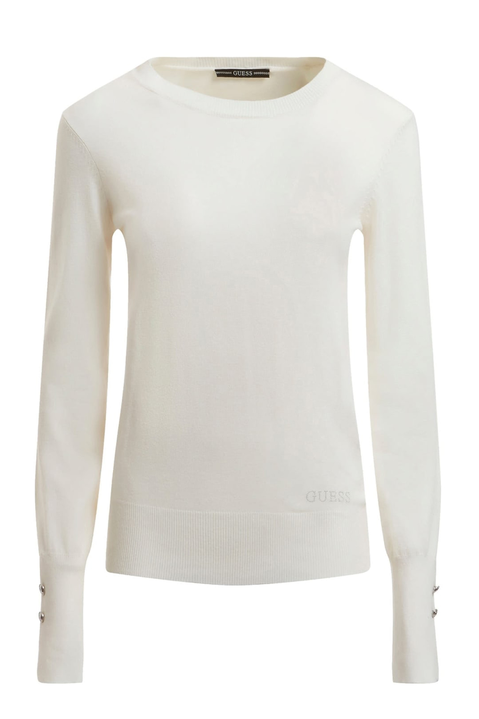 T-shirt in cotone bianco a girocollo e maniche lunghe.